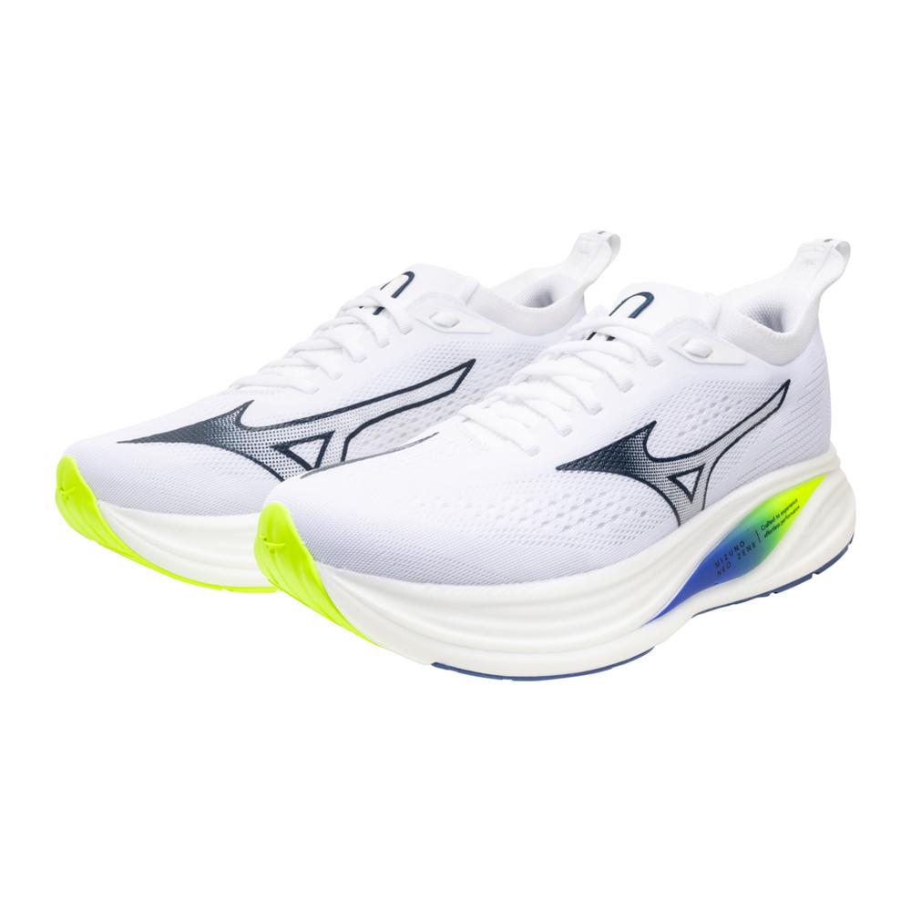 Designed for dedicated runners, this lightweight daily trainer enables smooth and efficient running with enhanced stability. The heel features a 40 mm stack height, Smooth Speed Assist design, and Mizuno Enerzy NXT, which provides exceptional cushioning and energy return while maintaining a strong ground feel. The shoe also has a newly redesigned upper combining breathable mesh and stretchy knit. It is a reliable, high-performance option for versatile uses from jogging to faster-paced runs.